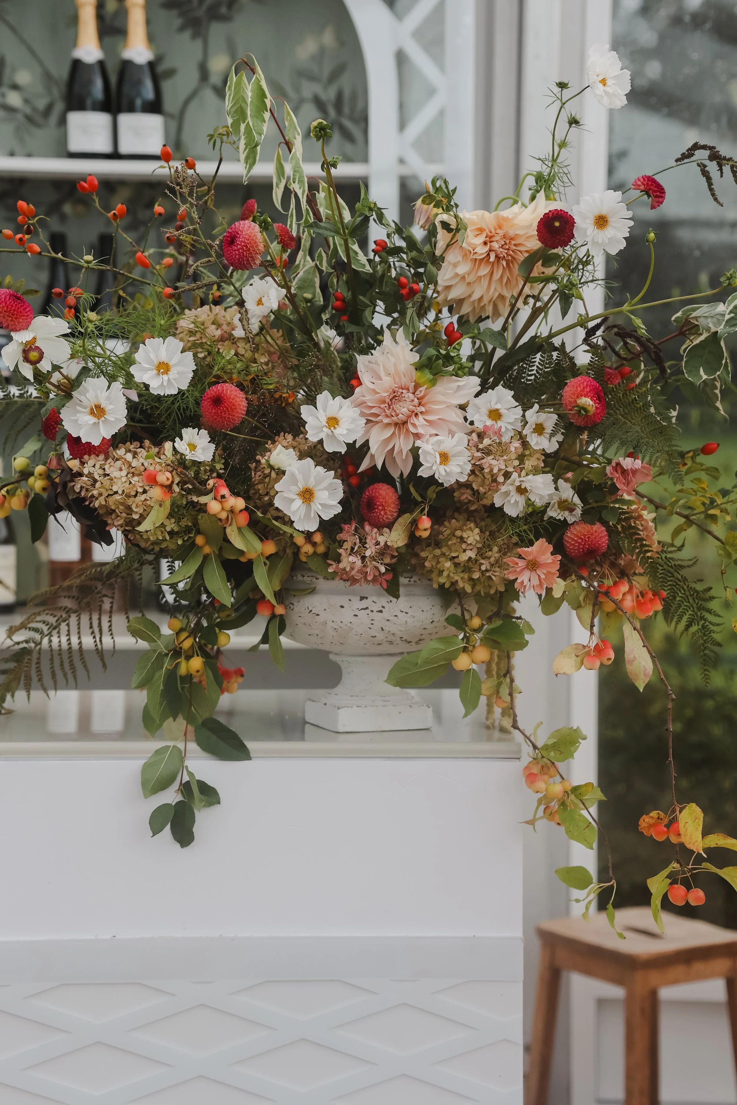 We deliver and install your flowers on the day or the day before, as agreed. Flowers can be thoughtfully repurposed throughout the day, and the following day we manage clear down, gifting arrangements to friends and family where requested.